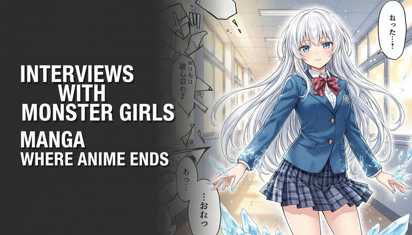Learn where the Interviews With Monster Girls anime concludes in the manga. Pick up from Chapter 33 and Volume 5. The series is complete.